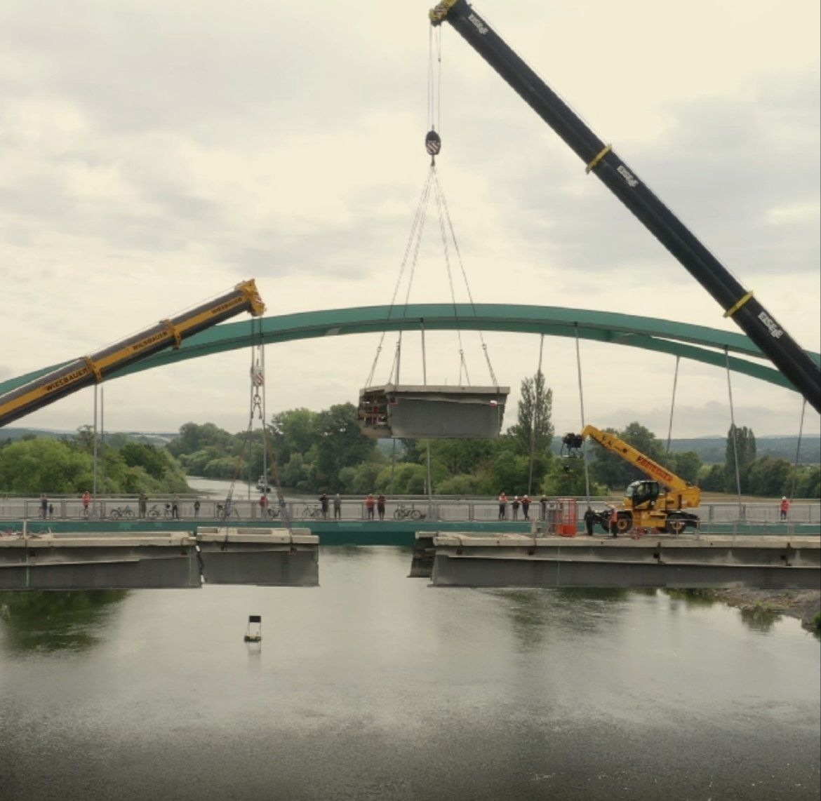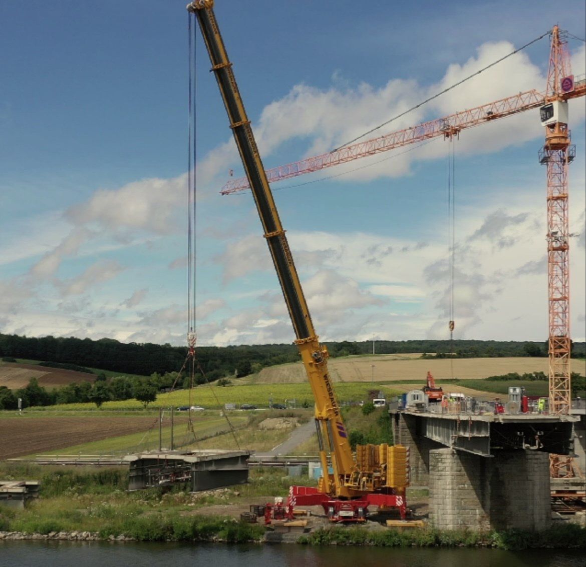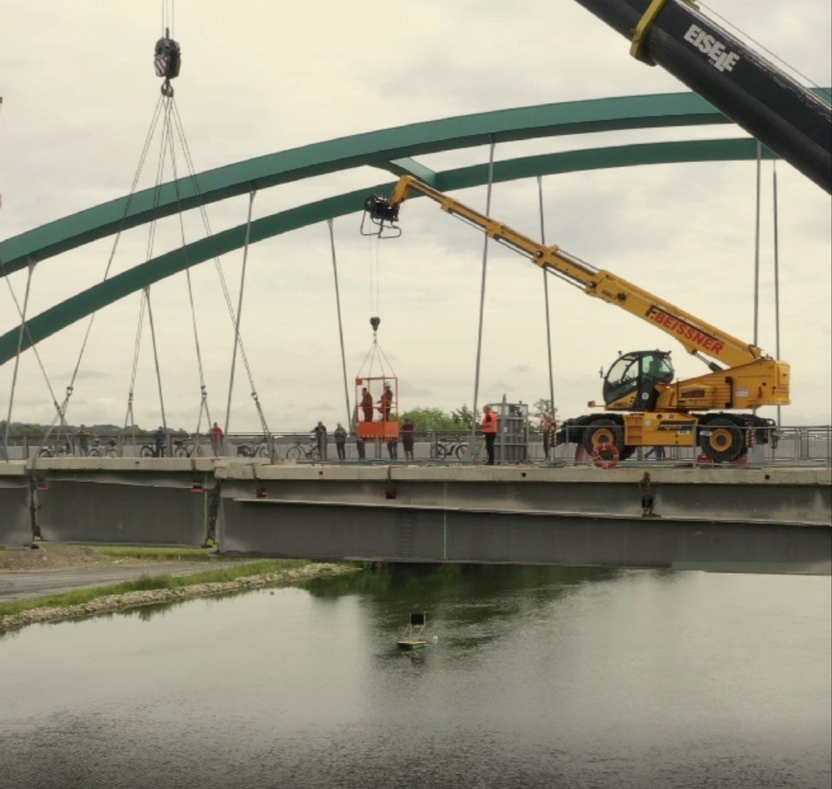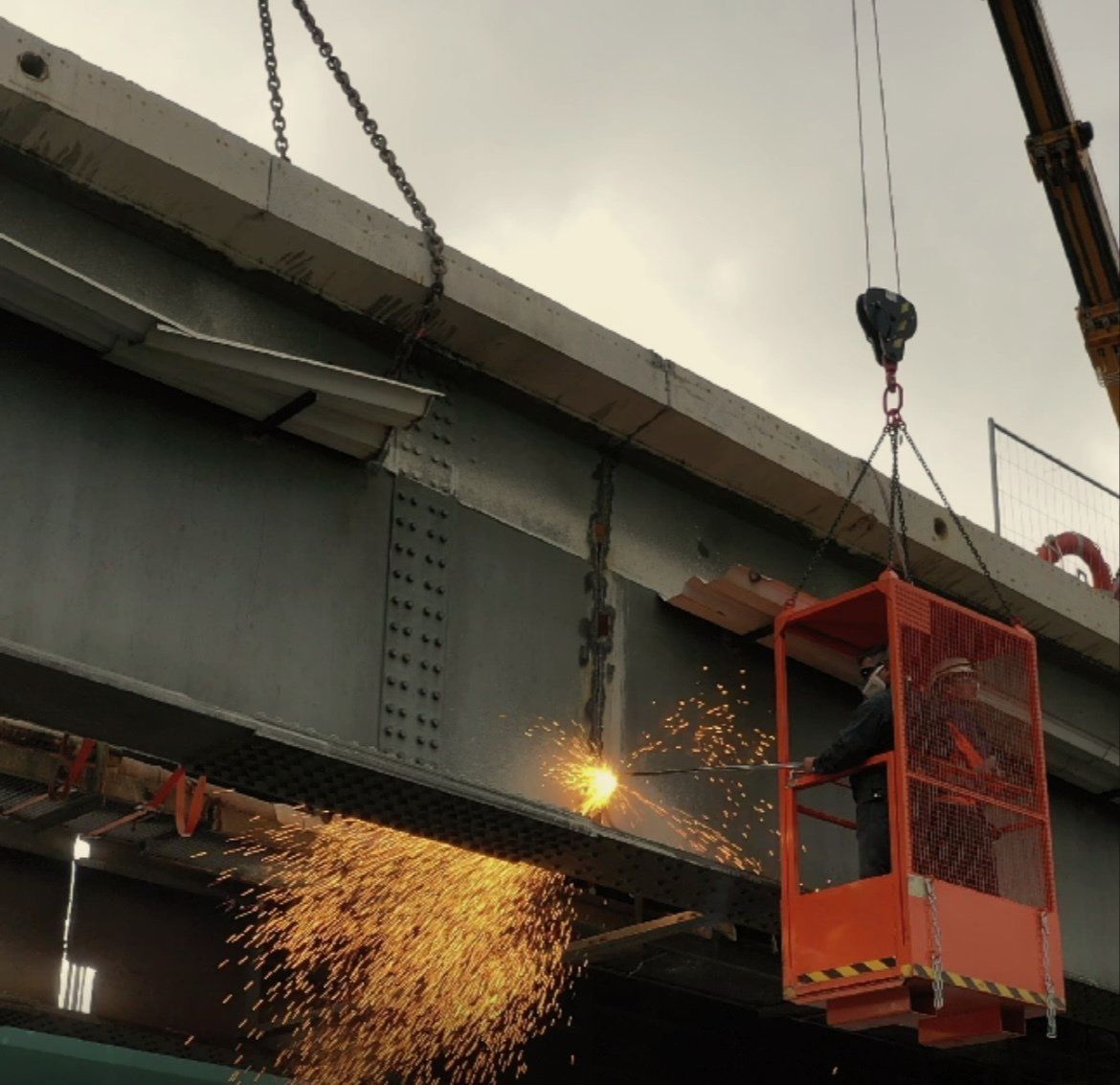 Im weiteren Verlauf wurde der Teil über dem Mainvorland abgebrochen. Zum Schluss dann, während einer Sperrstunde der DB, wurde der letzte Teil über der Bahnstrecke abgebrochen.