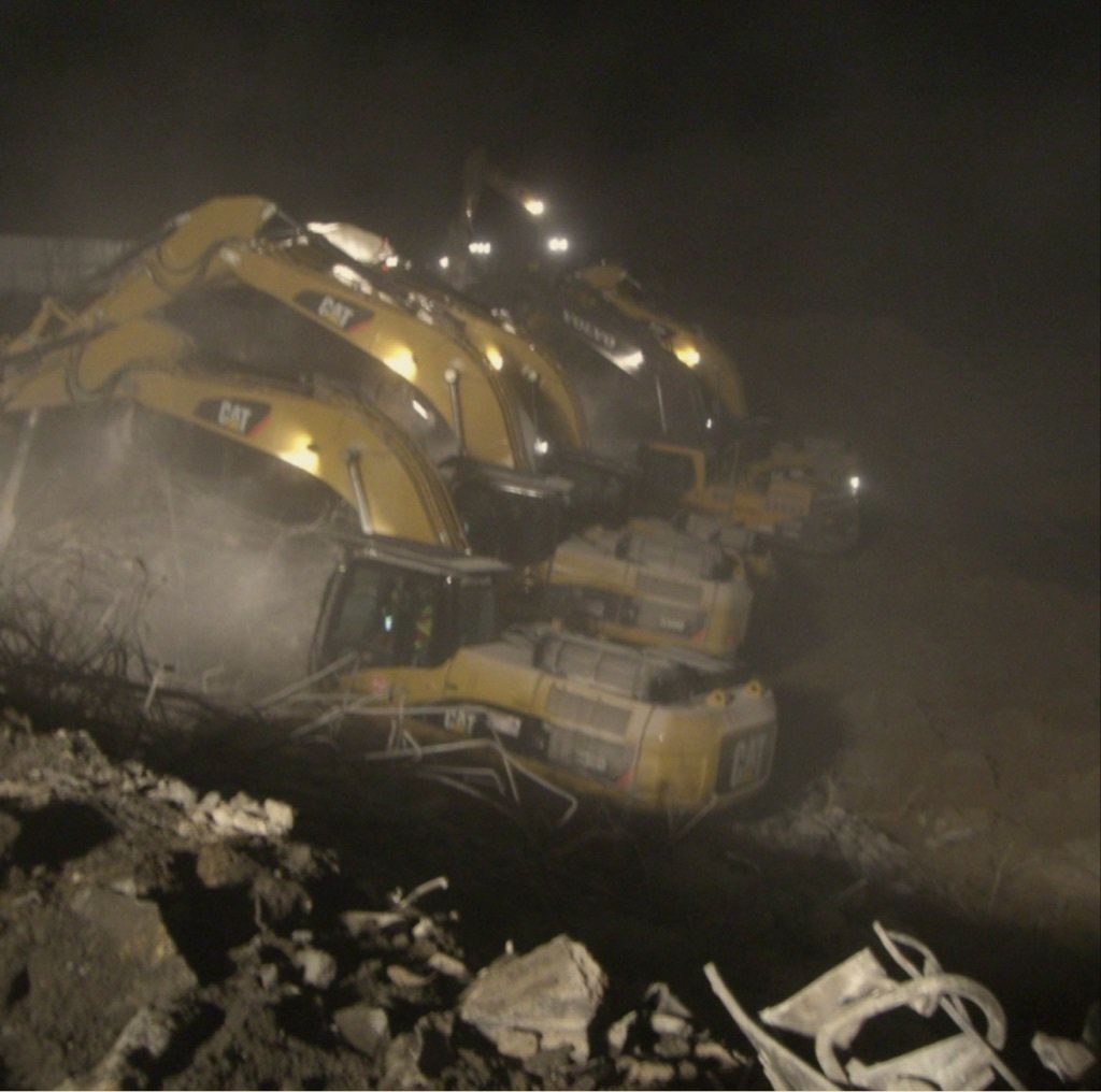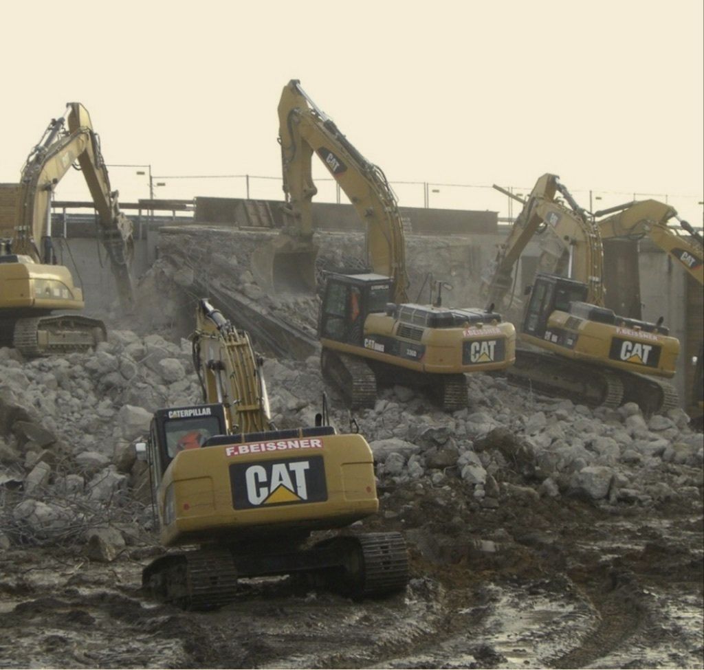 Insgesamt fielen bei dieser Baumaßnahme Massen von ca. 55.000 m3 Stahlbeton an, die von uns abgebrochen, selektiert und anschließend recycelt wurden.