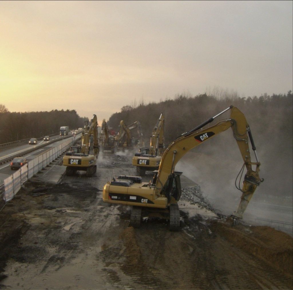 Für das Bauwerk Autobahndreieck Buchholz, welches in zwei Abschnitten abgebrochen wurde, sind jeweils sieben Kettenbagger der 45 to Klasse, sowie Radlader und Muldenkipper zum Einsatz gekommen. Die Sperrzeit betrug jeweils ca. 12 Stunden. Die Kubatur des Bauwerks belief sich auf ca. 2.720 3 Stahlbeton.