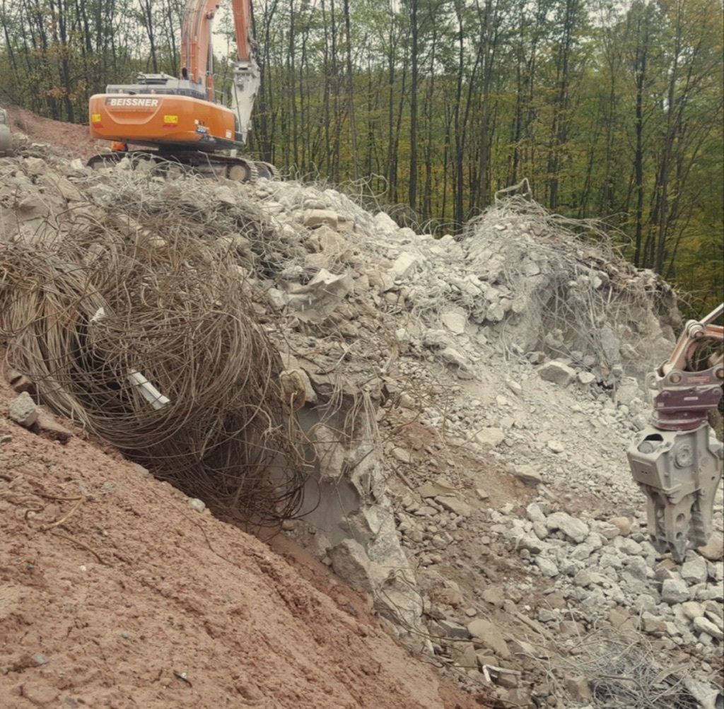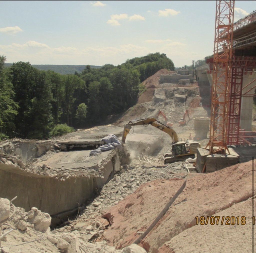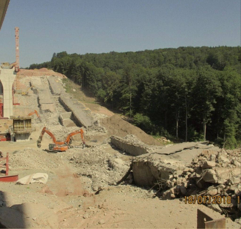 Das Bauwerk wurde mittels Pfeilersprengung und in Zusammenarbeit mit der Firma Reisch Sprengtechnik GmbH fachgerecht abgebrochen. Anschließend wurden die restlichen Bauwerkteile inkl. der Abbruchmassen mit Kettenhydraulikbaggern und Abaugeräten zerkleinert, verladen und fachgerecht entsorgt.